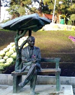 مجسمه این بزرگ مرد در بوستان ساعی که با نام این بزرگ مرد نامگذاری شده است، روی نیمکتی نشسته است. به نظر میرسد، او در حال نظارت و حفاظت از بوستانها و جنگلهای کشورش است.