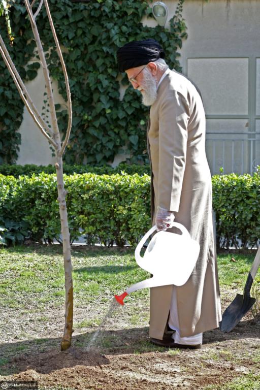 The Supreme Leader planted two fruit trees on Tuesday ahead of upcoming Arbor Day to mark the day. Arbor Day known as "National Tree Planting Day" in Iran is the fifteenth day of month of Esfand, which usually corresponds with March 5. This day is also the first day of the "Natural Resources Week (05-11 March)"in Iran. This is the time when the saplings of all kinds are distributed among people to encourage them to plant and care for trees and nature. They are also taught how to plant trees. Every year, just before the Iranian New Year, millions of Iranians plant trees to mark the tree-planting day in Natural Resources Week.