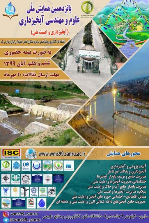 گفتنی است پانزدهمین همایش ملی علوم مهندسی و آبخیزداری با شعار "آبخیزداری و امنیت ملی" ششم و هفتم آبان در دانشگاه علوم کشاورزی و منابعطبیعی ساری با همکاری انجمن آبخیزداری ایران در حال برگزاری است.