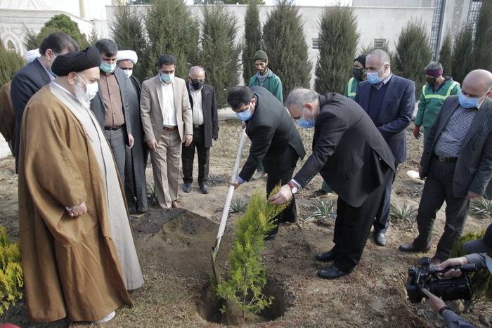 درختکاری، تعدادی نهال در محوطه مرقد مطهر غرس شد.