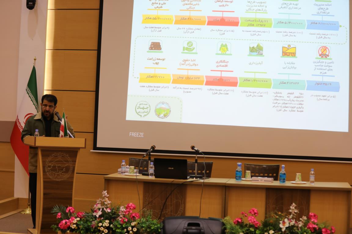 مسعود منصور در ادامه سخنان خود، به انجام دو میلیون هکتار کار آبخیزداری، 5 میلیون و 400 هزار هکتار تهیه طرح مرتعداری، احاله مدیریت 71 پارک جنگلی و توسعه بیش از 11 هزار هکتار گیاهان دارویی و شناسایی 410 هزار هکتار ذخیرهگاههای جنگلی در سال 99 اشاره کرد و افزود: همچنین در سال گذشته 55 میلیون هکتار عملیات کاداستر اراضی، یک میلیون و 200 هزار هکتار عملیات بیابانزدایی انجام شده است.
