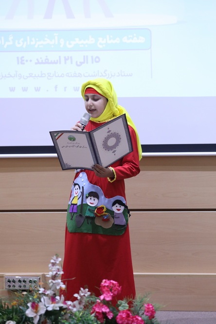 همچنین در این مراسم دختری نوجوان با لباسی مزین به رنگ طبیعت که از استان سمنان مهمان این مراسم بود دکلمه ای زیبا در وصف درخت و درختکاری قرائت کرد.