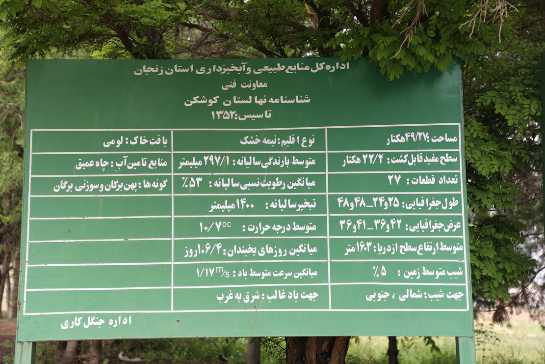 نهالستان مادری کوشکن اداره کل منابع طبیعی و آبخیزداری زنجان در حومه غربی شهر زنجان با وسعتی نزدیک به 50 هکتار و در 27 قطعه، تولیدکننده حدود 25 گونه مختلف اعم از جنگلی مثل ارس، بنه، زالزالک و فضای سبزی مثل زبان گنجشک، افرا، اقاقیا، ارغوان و گونه های چندمنظوره جهت کمک به معیشت بهره برداران مثل بادام، سنجد و مخصوصا صنوبر و کبوده برای زراعت چوب است. در راستای اجرای طرح سراسری کاشت یک میلیارد درخت، تعهد تولید نهال استان، 3.5 میلیون نهال برای سال 1402 است که به همین منظور، حدود 5 هکتار تسطیح و به سطح قطعات فعال اضافه شده است. قبل از اجرایی شدن طرح یک میلیارد درخت، سالانه تنها حدود 400 هزار اصله نهال از گونه های مختلف تولید می شد و این در حالیست که با شروع طرح مذکور، در حال حاضر فقط در پی کشت بهاره، حدود 800 هزار نهال زراعت چوب تولید شده و با کاشت ارقام جنگلی در پاییز، نهال های تولیدی به رقم تعهد تولید اداره کل منابع طبیعی و آبخیزداری زنجان نزدیک خواهد شد.