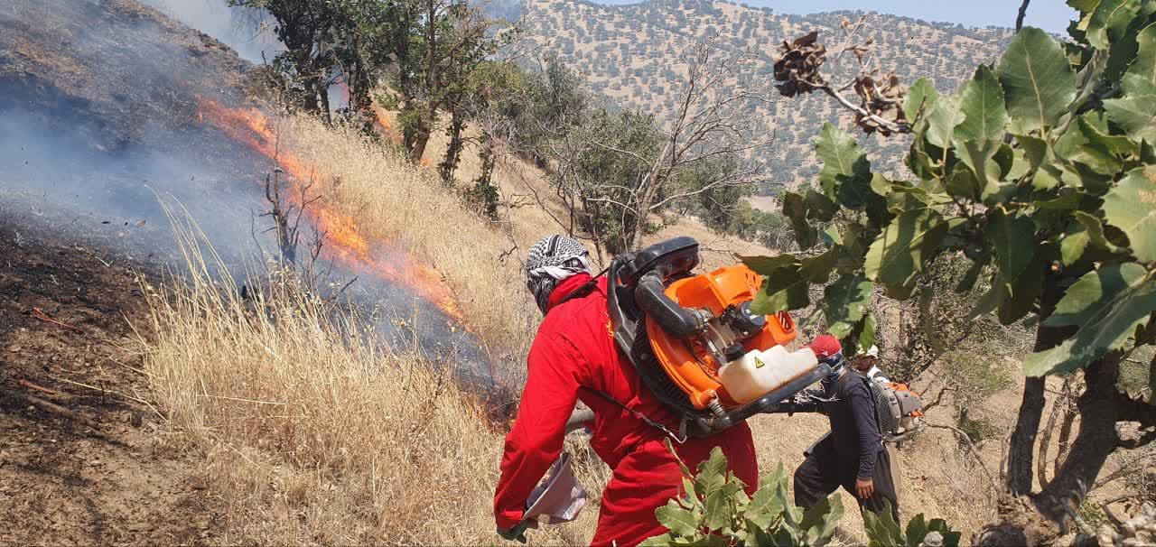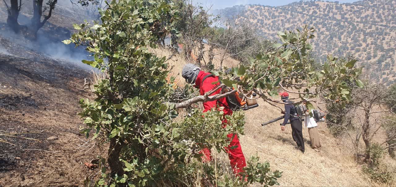 50 نفر نیروی حفاظتی از سراسر استان خود را به مریوان رسانده و با دمنده در حال اطفای حریق جنگل ها هستند.