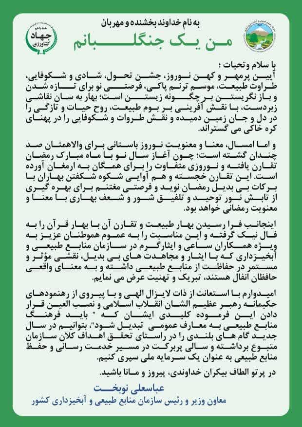 پیام تبریک رئیس سازمان منابع طبیعی و آبخیزداری کشور به مناسبت سال نو