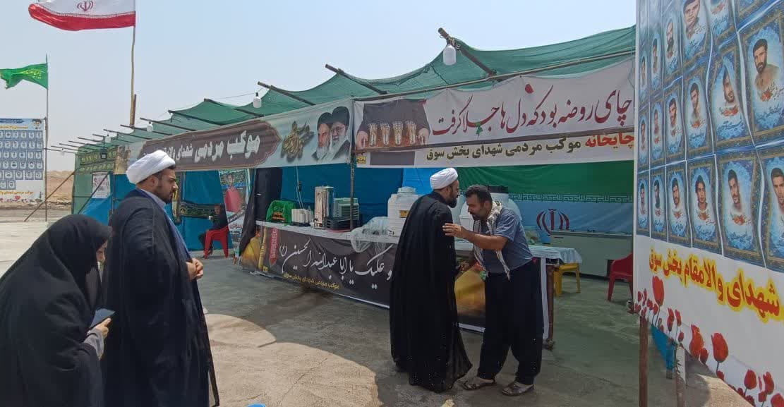 حجت الاسلام علائیان که به عنوان نماینده ویژه حجت الاسلام والمسلمین ربانی؛ نماینده ولی فقیه در وزارت جهاد کشاورزی جهت بازدید از مواکب وزارتخانه وارد استان خوزستان شده بود از روند خدمترسانی مواکب مختلف بازدید کرد و به موکبداران حسینی خداقوت گفت.